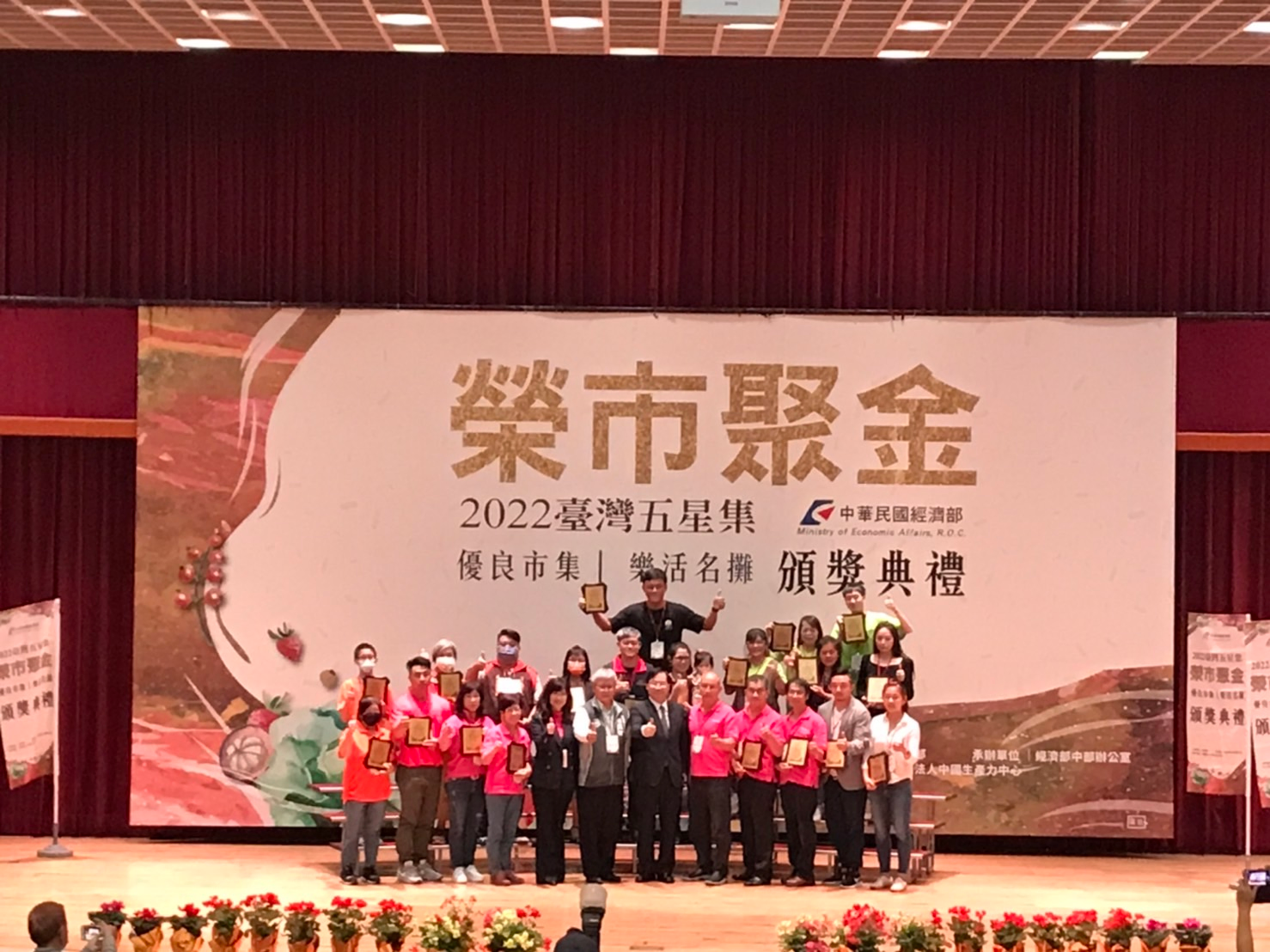 經濟部今(14)日於中興新村臺灣省政資料館舉辦盛大「2022榮市聚金—優良市集暨樂活名攤」頒獎典禮,今年度全國共有14處優良市集、72攤樂活名攤通過評核獲得5星級肯定,獲獎者數量較前年翻倍成長,為歷年之冠。